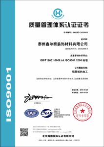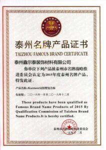 The company has passed three certifications of International Quality System (GB/T19001-2000), Occupational Health and Safety Management System (GB/T28001-2001), and Environmental Management System (GB/T24001-2004); It is the earliest enterprise to adopt international standard product mark. The company also received honors such as “China Famous Brand”, “Green Building Materials Products” and “China Market Credit AAA Grade Units” and so on.